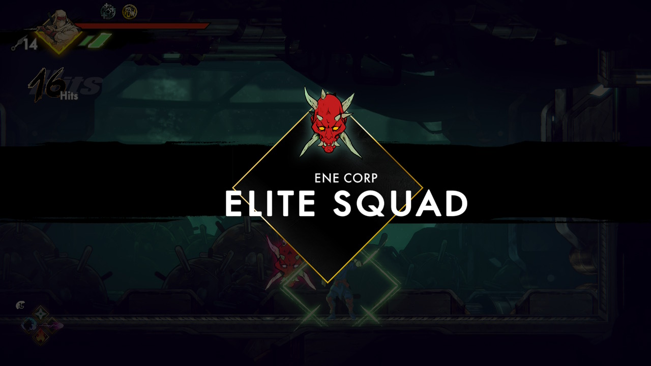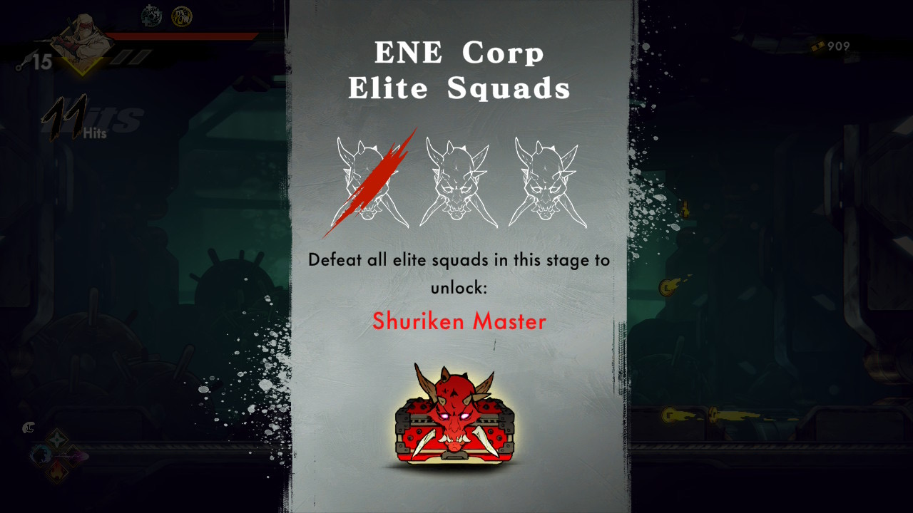 Where Shinobi excels is gameplay, stage design, and the small layers of mechanical nuance that enrich both. The core is faithful to classic Shinobi, yet the game expands the formula with metroidvania-style exploration. Traversing the interconnected stage network rewards you with upgrade materials, currency, and optional Elite Force encounters. These Elite Force units represent ENE Corp’s elite killers responsible for Musashi’s village massacre. They are essentially empowered variants of regular enemies, arriving in waves with increased durability and attack power. Clearing each Elite Force zone without dying grants an emblem, and collecting these emblems unlocks permanent upgrades or new techniques.