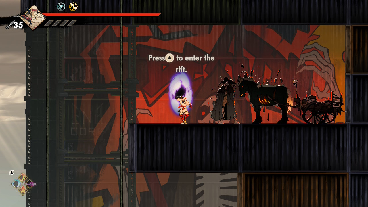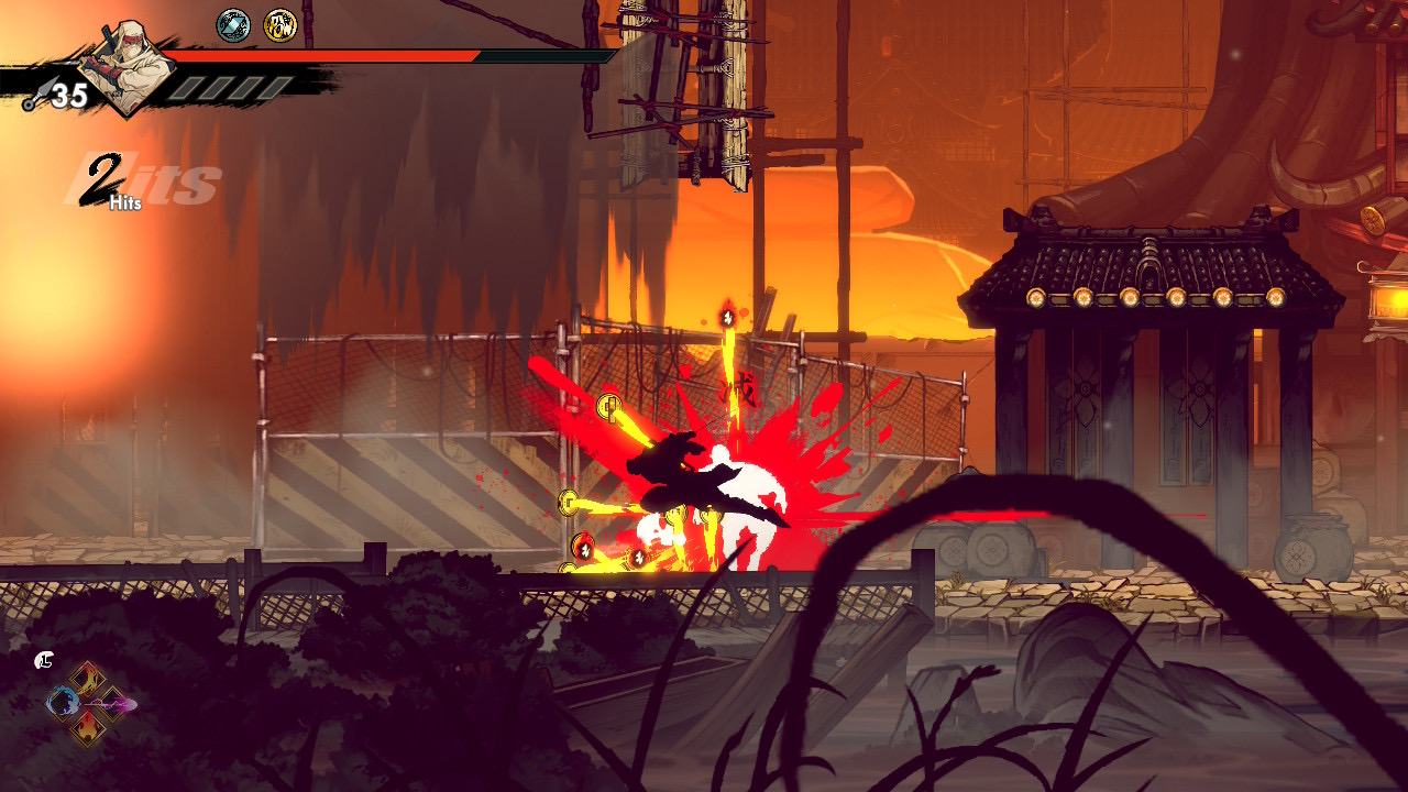 The platforming is deliberately demanding, echoing influences such as Celeste. Missing a jump or mistiming a dash respawns Musashi instantly at the last safe spot instead of pulling him back to a distant checkpoint. This accelerates learning, keeps the game’s pacing sharp, and prevents frustration. Checkpoints themselves act both as rest points and fast-travel anchors across stages. The toughest challenge segments, such as the Antou Rift platforms, rely heavily on this rapid respawn system.